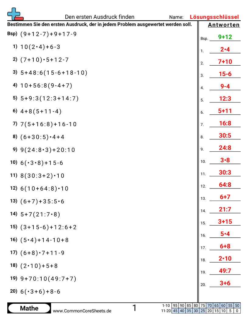 Kostenlose math-Arbeitsblätter für 6. Klasse (6ee2c) zu Den ersten Ausdruck finden. Jedes Arbeitsblatt enthält 20 Aufgaben mit Lösungsschlüssel und ist ideal für Lehrkräfte und Homeschooling. Sie können das PDF herunterladen, Karteikarten erstellen oder es für Online-Lernen nutzen.