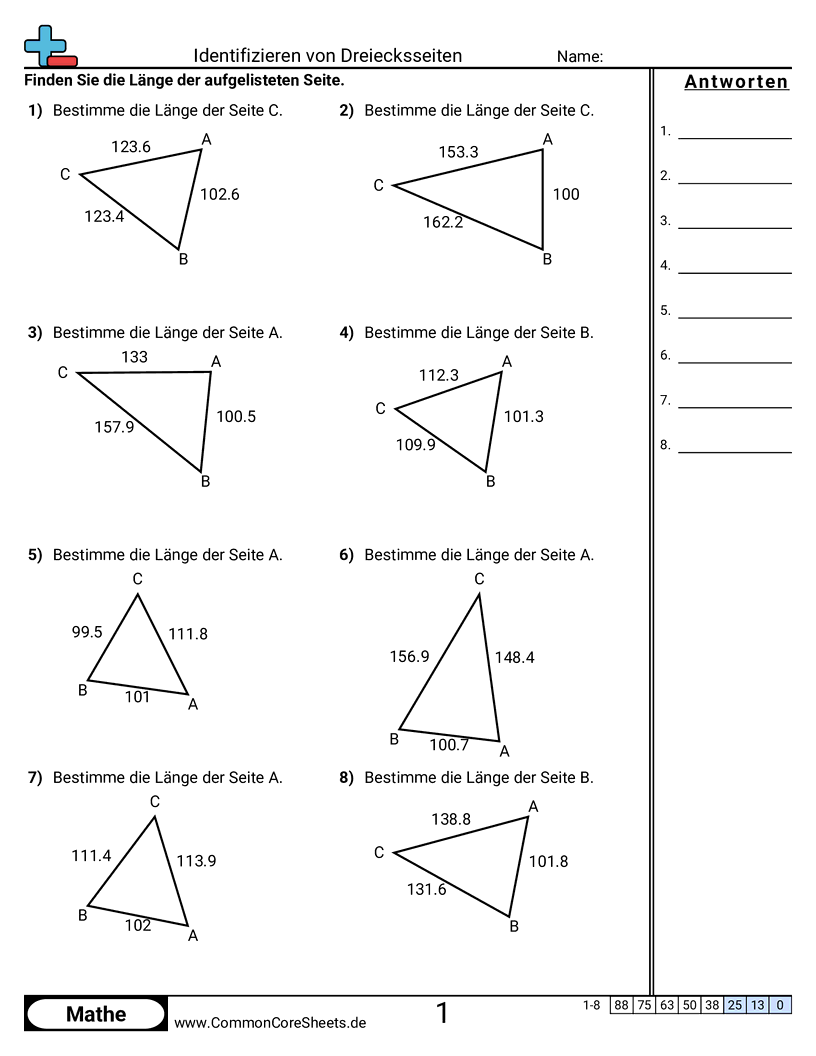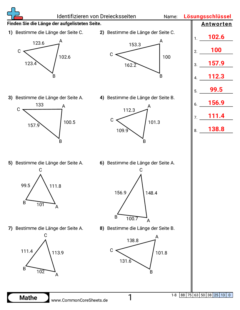 Kostenlose math-Arbeitsblätter zu Identifizieren von Dreiecksseiten. Jedes Arbeitsblatt enthält 8 Aufgaben mit Lösungsschlüssel und ist ideal für Lehrkräfte und Homeschooling. Sie können das PDF herunterladen, Karteikarten erstellen oder es für Online-Lernen nutzen.