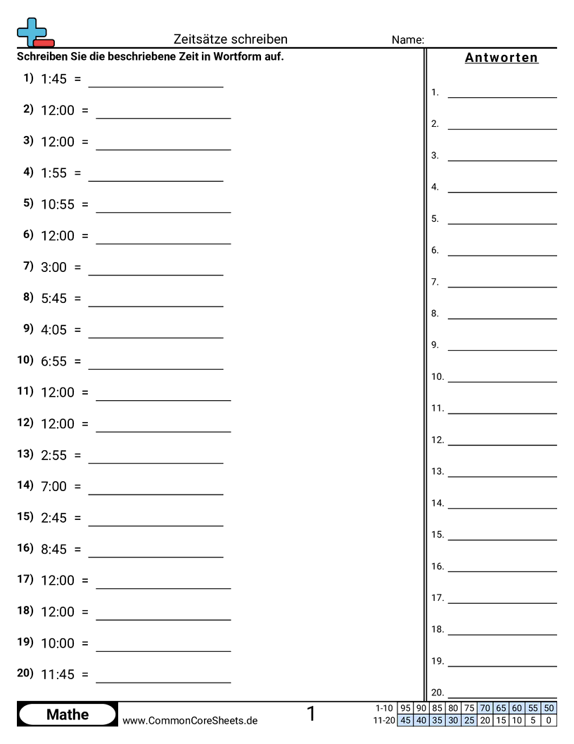 Kostenlose math-Arbeitsblätter zu Zeitsätze schreiben. Jedes Arbeitsblatt enthält 20 Aufgaben mit Lösungsschlüssel und ist ideal für Lehrkräfte und Homeschooling. Sie können das PDF herunterladen, Karteikarten erstellen oder es für Online-Lernen nutzen.